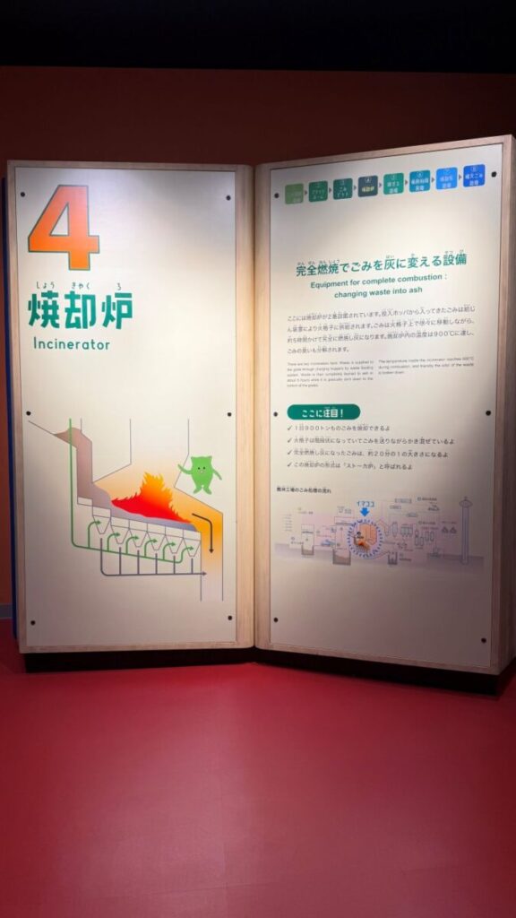 焼却炉のシステムも面白く、臭いをなくすために焼却炉に送り込んで燃やしているそうです。