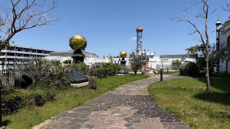 これは、2001年に作られた「大阪広域環境施設組合・舞洲工場」なのです。オーストリア人の作家が作ったもので、建物は芸術作品と言うことらしいです。中のシステムはアップグレードされているようです。年数回のオープンデイに備えて、外観の掃除などもされるそうです。