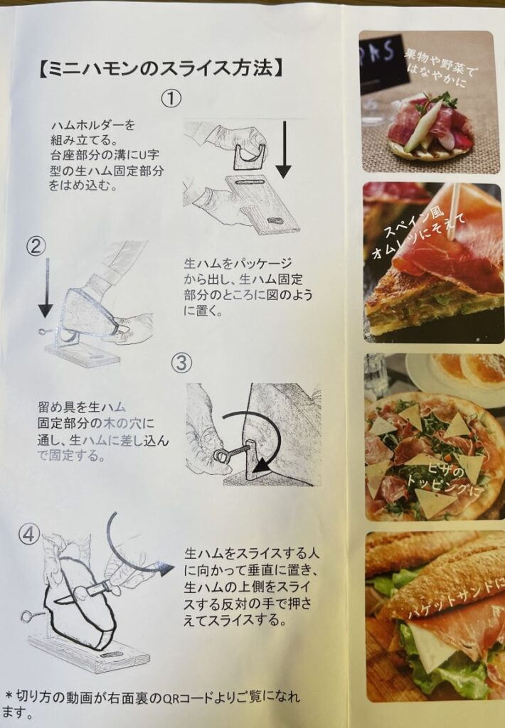 生ハムってパックして売っているのしか知らなかったので、注文した生ハムが結構値段が高いなぁと思っていたら、なんと1㎏もあるとのこと。大きな箱に小さなまな板とヘラヘラのナイフがついていた。なかなか開けるのに勇気がいった。